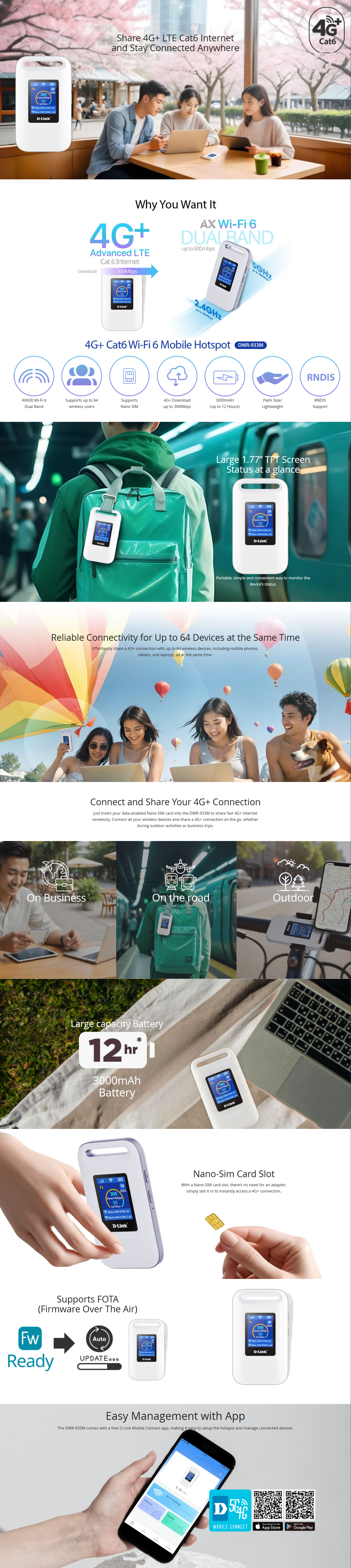 • What's in the Box 1x D-Link DWR-933M 4G+LTE Cat6 Wi-Fi 6 Mobile Hotspot