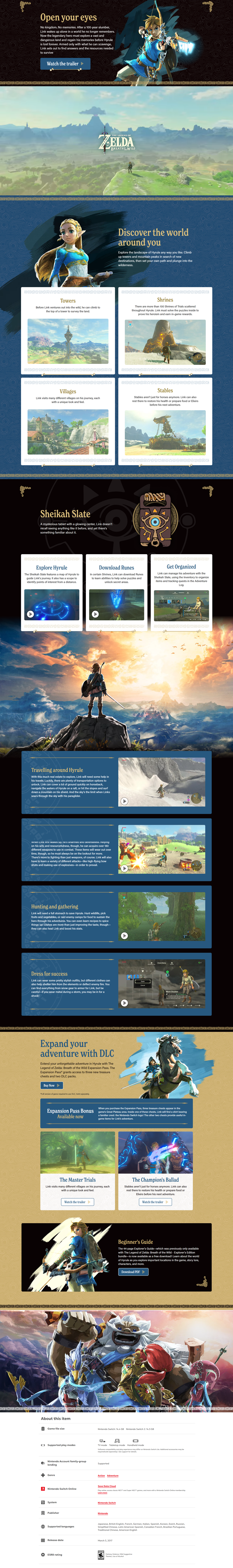 •Open-world adventure gameplay with complete freedom to explore Hyrule