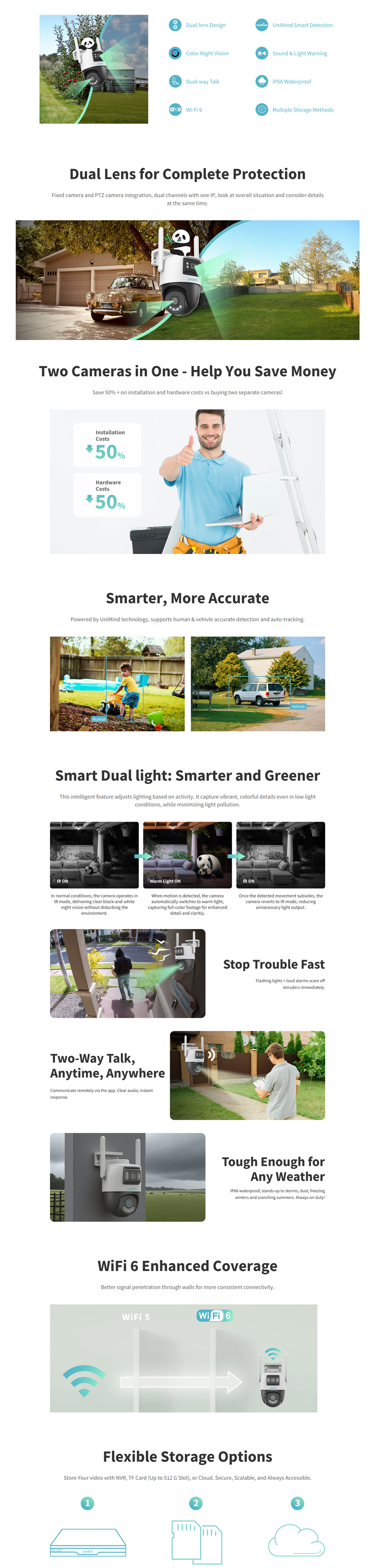 •Fixed + PT Lens – Wider coverage with dual perspective
