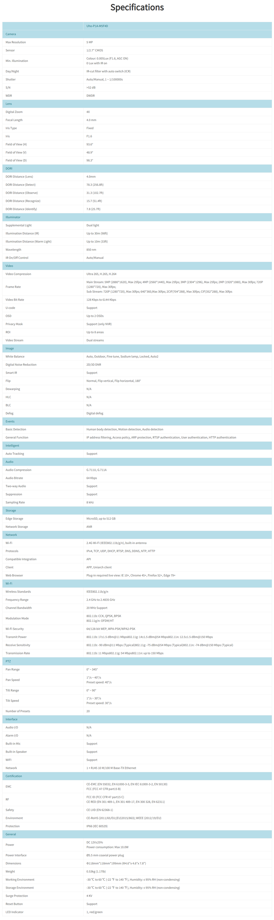 Uniarch P1A 5MP 4.0mm Outdoor PT WiFi CCTV Camera IR Night Vision