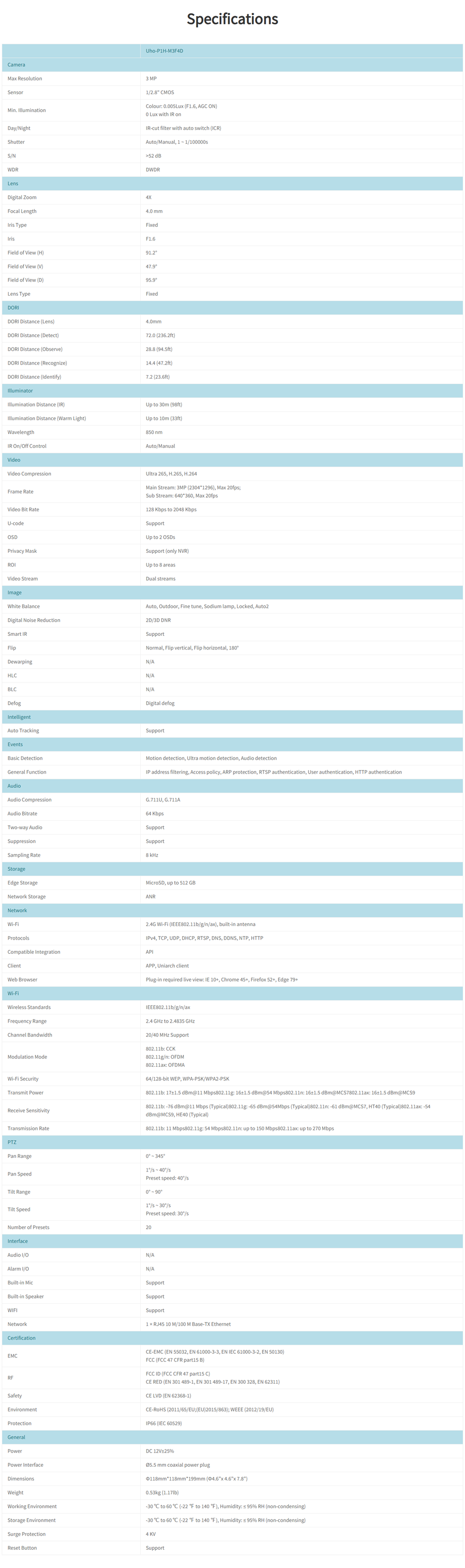 Uniarch P1H 3MP 4.0mm Outdoor PT WiFi CCTV Camera IR Night Vision