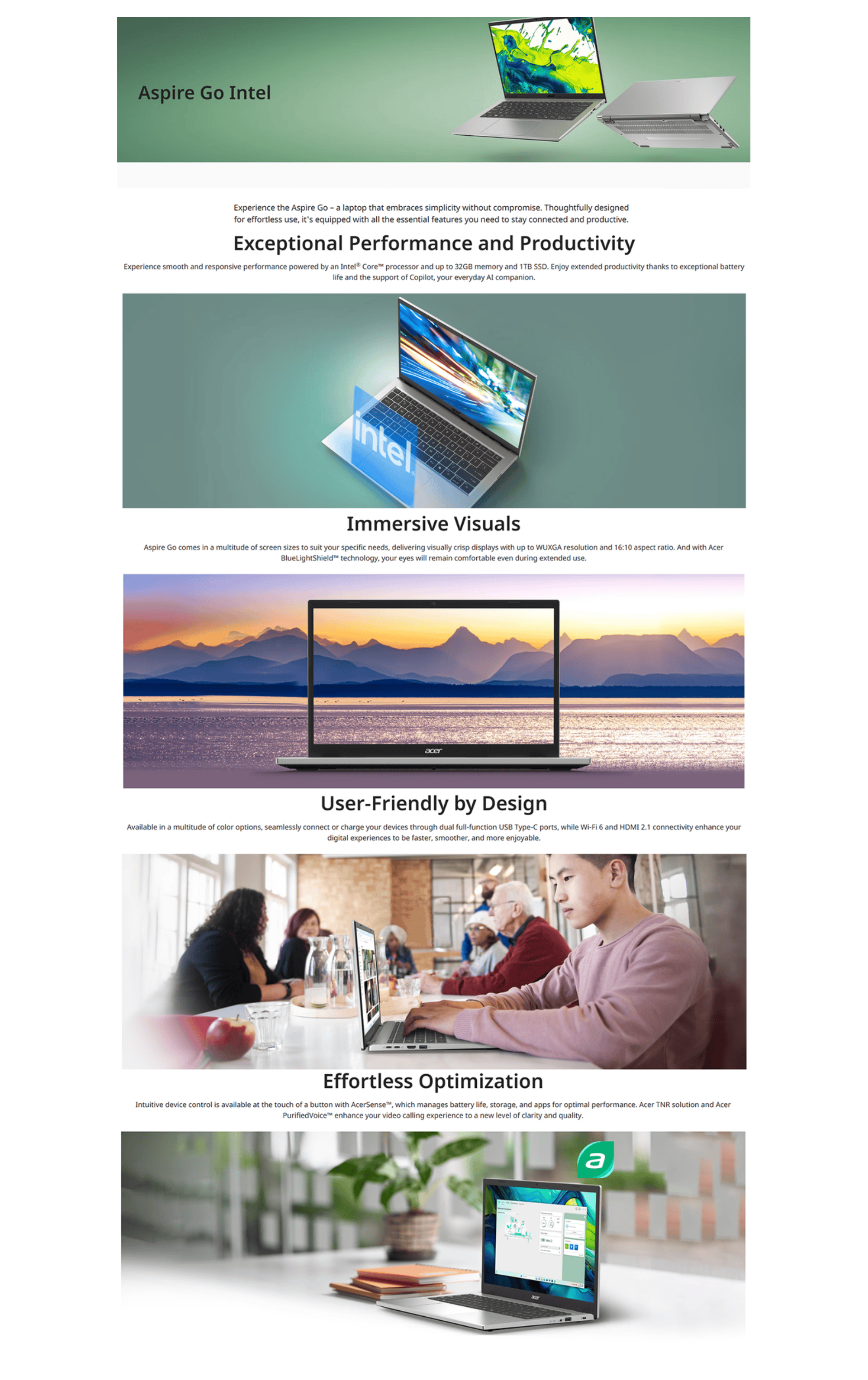 Acer Aspire Go 14 AG14-72P-526S Laptop (Intel  ® Core™ 5 120U | 14” WUXGA | 16GB RAM | 512GB SSD | Intel  ® UHD Graphics | Windows 11 Home | Microsoft Office Home 2024 + Microsoft 365 Basic)