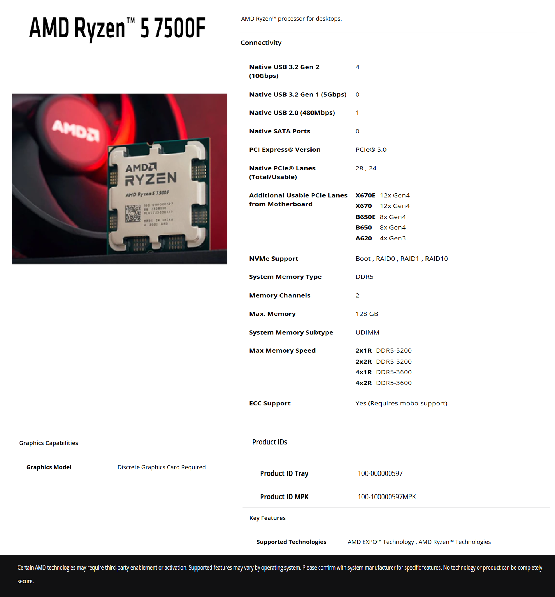 Product Code:   R5 7500F  PROAMD00000597