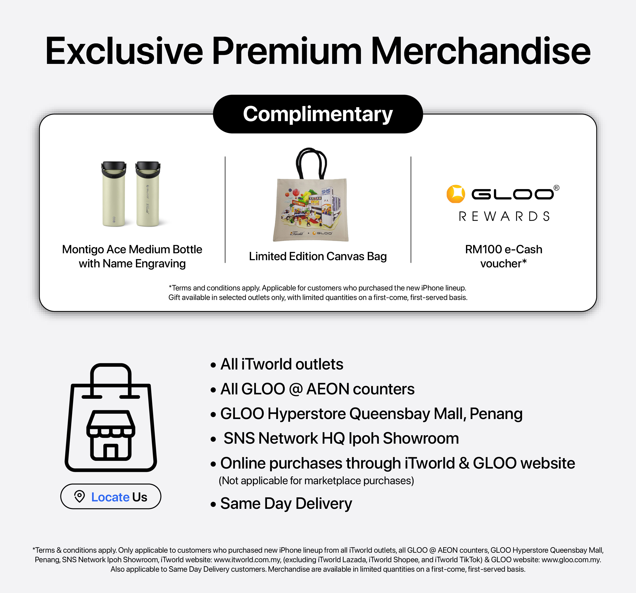 - SNS Network (M) Sdn Bhd, GLOO & iTworld reserves the right to alter the terms without any prior notice.